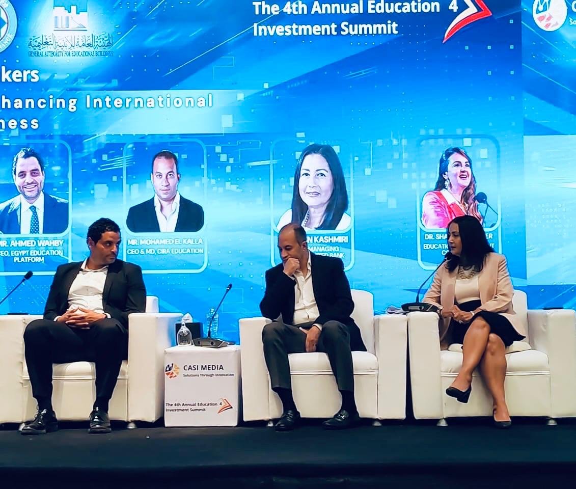 اقيمت فاعليات المؤتمر تحت عنوان “الاستثمار في التعليم بين التعددية والتكامل والتوسعات الاقليمية”. شارك في الجلسة الاولي كل من : داليا ابراهيم – رئيس مجلس ادارة مؤسسة نهضة مصر ومحمد رسلان – الشريك المؤسس لمكتب ليفاري للمحاماة والمهندس عماد عيسي – رئيس مجموعة اركان جروب واركان للخدمات التعليمية وبمشاركة نيفين كشميري – نائب العضو المنتدب ورئيس قطاعات الاعمال المصرف المتحد. وادار الجلسة هيثم وجية – العضو المنتدب لشركة افانز كابيتال مصر.