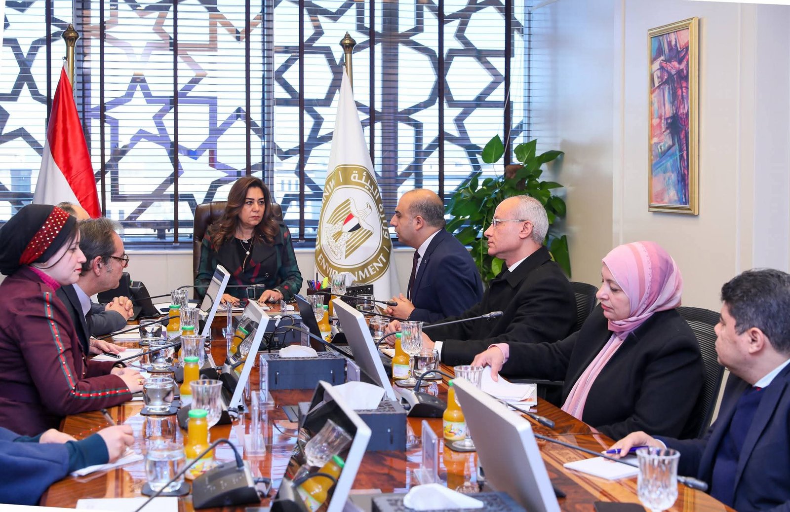بحضور الدكتور علي أبو سنة رئيس جهاز شئون البيئة و ياسر عبد الله رئيس جهاز تنظيم ادارة المخلفات، والمهندس شريف عبد الرحيم مساعد الوزيرة للسياسات المناخية والدكتور محمد حسن مدير مشروع ادارة تلوث الهواء وتغير المناخ بالقاهرة الكبرى.