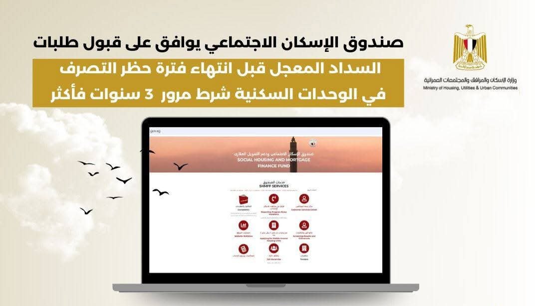 أعلنت مي عبد الحميد، الرئيس التنفيذي لصندوق الإسكان الاجتماعي ودعم التمويل العقاري، عن الموافقة على قبول طلبات السداد المعجل قبل انتهاء فترة حظر التصرف في الوحدات السكنية وذلك للوحدات التى مر على استلامها أكثر من 3 سنوات.